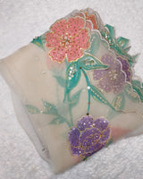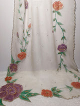 Completing the ensemble is a pure silk organza dupatta, hand-painted with embellishments and delicate cutwork along the sides for a truly enchanting ensemble.